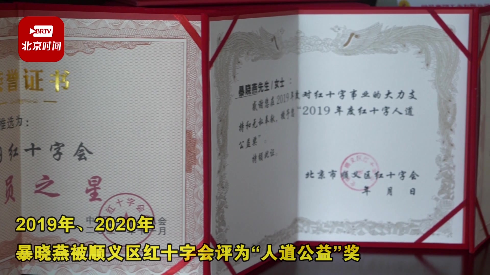 2019年、2020年暴晓燕被顺义区红十字会评为“人道公益”奖,2021年被中国红十字会评为中国红十字会“会员之星”荣誉称号,2022年被北京市红十字血液稀有血型爱心之家评为“奉献奖”。